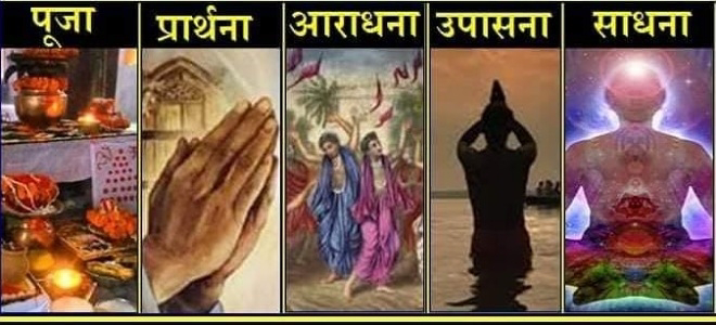 सबसे पहले तो आप पूजा को समझिये |पूजा वह प्रक्रिया है जिसमे किसी भी देवी देवता को उसकी ऊर्जा के अनुकूल पदार्थों के साथ पूजन करते हुए उसको उर्जा दी जाती है अर्थात प्रसन्न करने की कोशिश होती है ताकि उसकी ऊर्जा से आपको लाभ हो सके |इसमें अक्षत अथवा तिल ,जल ,विशेष फूल ,विशेष फल ,विशेष नैवेद्य अर्पित किये जाते हैं ताकि उसकी उर्जा के अनुकूल पदार्थो से उसकी उर्जा बढे ,उस स्थान पर उर्जा उत्पन्न हो ,उस उर्जा से आपको लाभ हो |पूजा पदार्थों के साथ दैवीय उपचार है |अब प्रार्थना को समझते हैं |प्रार्थना वह प्रक्रिया है जिसमे आप अपने ह्रदय और भाव से ,अपनी भाषा में किसी दैवीय शक्ति से अपनी इच्छा और मनोकामना कहते हैं |यहाँ भाव ,श्रद्धा ,आतंरिक जुड़ाव और तन्मयता मुख्या शक्ति होती है जो ला आफ अट्रेक्शन की तरह दैवीय शक्ति को आकर्षित करती है |तीसरी प्रक्रिया अध्यात्म जगत में दैवीय कृपा पाने की उपासना होती है |उपासना में आप किसी भी शक्ति के स्तोत्र ,कवच ,सहस्त्रनाम ,ह्रदय आदि का पाठ करते हैं |इसमें पूजा सम्मिलित होती है और संकल्प आवश्यक अंग हो जाता है |इस प्रक्रिया में आप देवता से सुरक्षा के साथ उसकी विभिन्न नामों ,गुणों ,बीजों के साथ प्रशंशा करते हुए मनोकामना पूर्ती की इच्छा व्यक्त करते हैं |चौथी क्रिया दैवीय कृपा पाने की आराधना होती है |आराधना ,प्रार्थना के बाद सबसे सरलतम क्रिया है |पूजा ,उपासना और साधना में मार्गदर्शन की जरुरत होती है किन्तु प्रार्थना और आराधना में विशिष्ट मार्गदर्शन जरुरी नहीं होता |आराधना में देवी -देवता के भजन ,चालीसा पाठ आदि आते हैं जो भी सरलतम रूप से किये जा सकें और जिनमे बीज मंत्र ,शपथ आदि न हों |आराधना में स्वरुप ,कार्य और गुणों का बखान करते हुए देवता से अपने ऊपर कृपा करने की कामना व्यक्त की जाती है |इसकी मुख्या शक्ति भक्ति और श्रद्धा होती है |